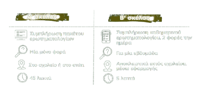 δύο ειδοποιήσεις την ημέρα (πρωί και απόγευμα/βράδυ) για καθημερινή συμπλήρωση σύντομων ερωτηματολογίων διάρκειας περίπου 5 λεπτών η κάθε μια.